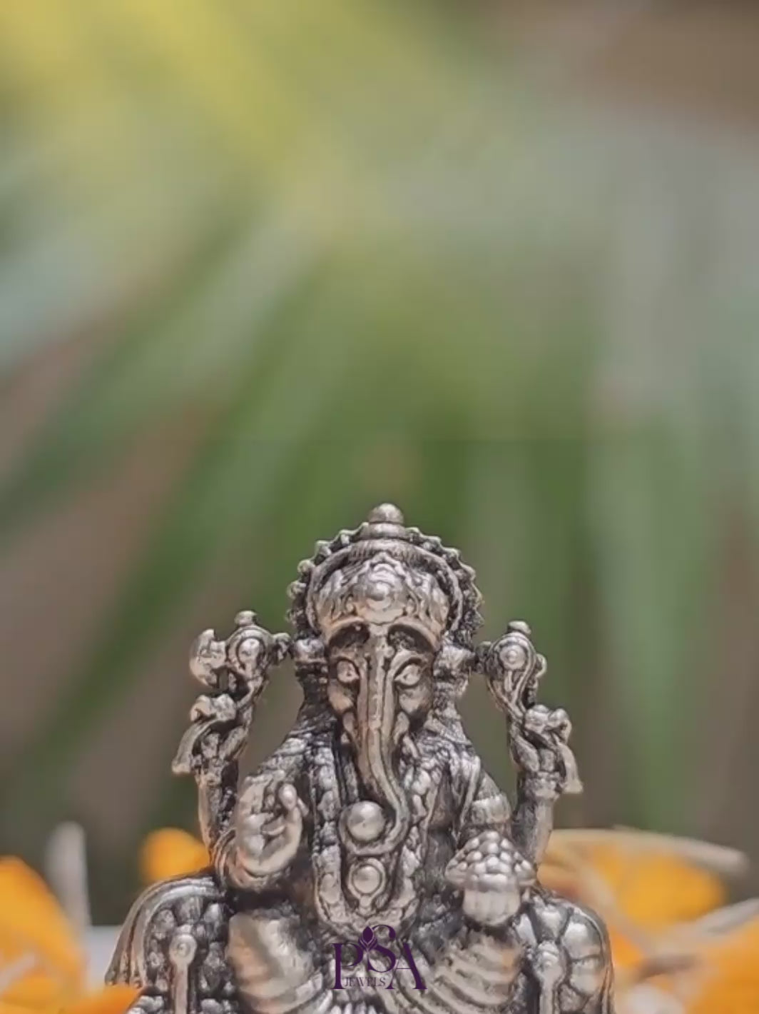 "Embrace divine blessings with our exquisite Pure Silver Ganeshji Idol. Elevate your sacred space with the presence of these revered deities. Crafted with precision and devotion, this masterpiece is a symbol of prosperity, wisdom, and auspicious beginnings. Bring home the essence of divinity today."