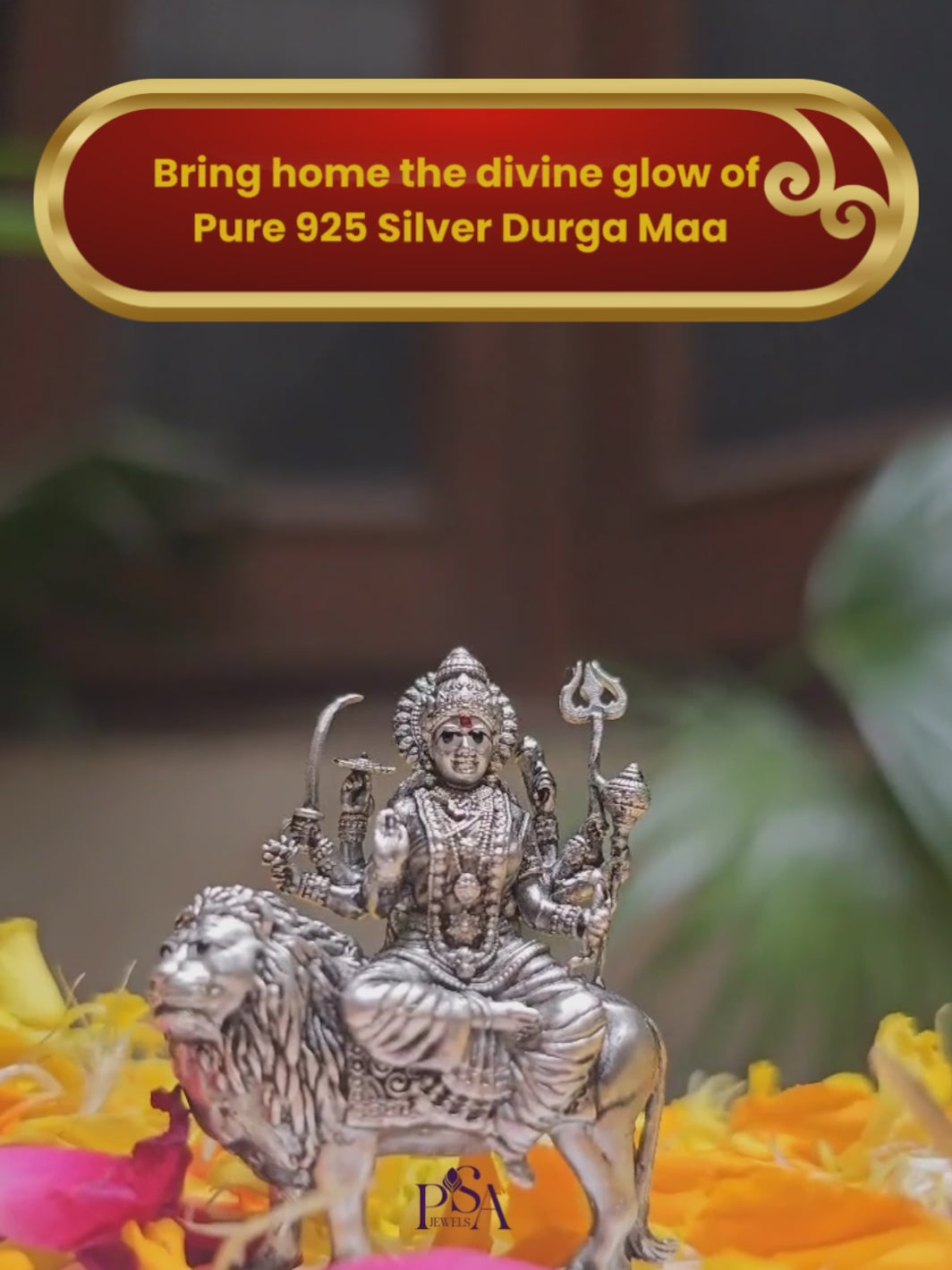 "Bask in the divine presence of Maa Ambe with our pure Silver Ambe Maa Idol. Radiating compassion, strength, and maternal love, Maa Ambe is revered as the divine mother, symbolizing protection and nurturance. Crafted with intricate detail and sterling silver craftsmanship, this exquisite idol captures the essence of Maa Ambe's divine grace. Invite her auspicious blessings into your home and experience a sense of divine protection and abundance. Embrace the divine feminine energy with this timeless masterpiece, elevating your spiritual connection to Maa Ambe."