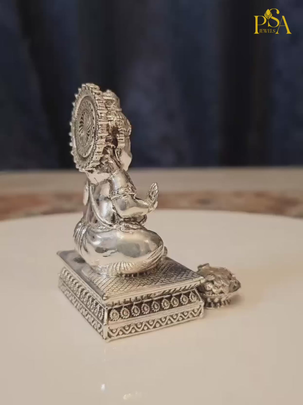 "Unlock the doors to prosperity and abundance with our Pure Silver Kuber Bhandari Idol. Revered as the celestial treasurer and bestower of wealth, Kuber symbolizes prosperity, success, and abundance. Crafted with meticulous detail and sterling silver craftsmanship, this exquisite idol radiates the auspicious energy of prosperity and financial well-being. Invite the blessings of Kuber Bhandari into your home or workplace and experience a sense of divine abundance and fortune. Embrace the divine grace of the celestial treasurer with this timeless masterpiece, elevating your journey towards prosperity and success."